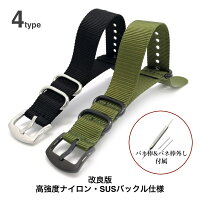 【高強度ナイロン・大型ステンレスバックル】改良版 NATOタイプ 時計ベルト ナイロンベルト 20mm 22mm 24mm【バネ棒&バネ棒外し付属】